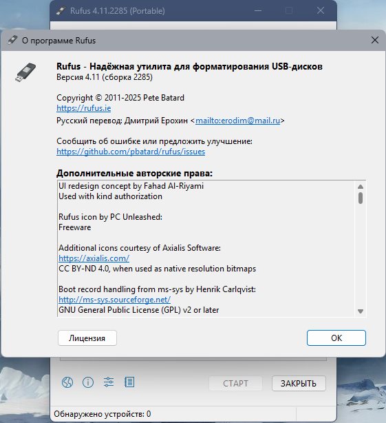 Год выпуска: 2025 Версия: 4.11 (Build 2285) Адрес оф. сайта:ссылка Автор сборки: Pete Batard Язык интерфейса: Русский, Английский и др. Лечение: не требуется Системные требования: Windows 8, 10, 11 (x86 / x64) Описание: Rufus - небольшая утилита помогает отформатировать и создавать загрузочные USB флэш-накопители (USB ключи, карты памяти и т.д.). Несмотря на свои небольшие размеры, Rufus предоставляет все, что вам нужно для создания установочного USB носителя с загрузочными ISO (Windows, Linux и т.д.) или микропрограммами из DOS.